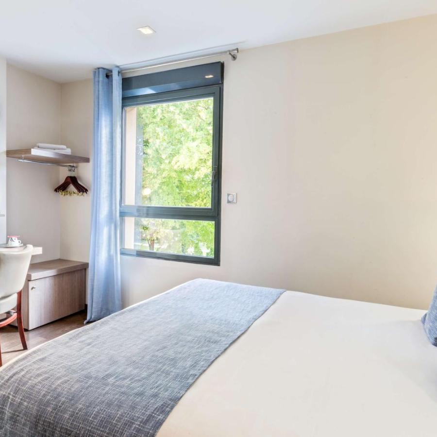 Die 60 Zimmer des Hotels sind sorgfältig gestaltet, um modernen Komfort und absolute Ruhe zu bieten. Schallisoliert und klimatisiert verfügen alle Zimmer über kostenloses WLAN, einen Flachbildfernseher mit einer großen Auswahl an Kanälen sowie ein Begrüßungstablett mit Tee und Kaffee. Die Zimmer sind in verschiedenen Kategorien erhältlich, von Einzelzimmern für Soloausflüge bis hin zu Familienzimmern für bis zu vier Personen. Zwei Zimmer sind auch speziell für Gäste mit eingeschränkter Mobilität ausgestattet, um einen barrierefreien Aufenthalt für alle zu gewährleisten.