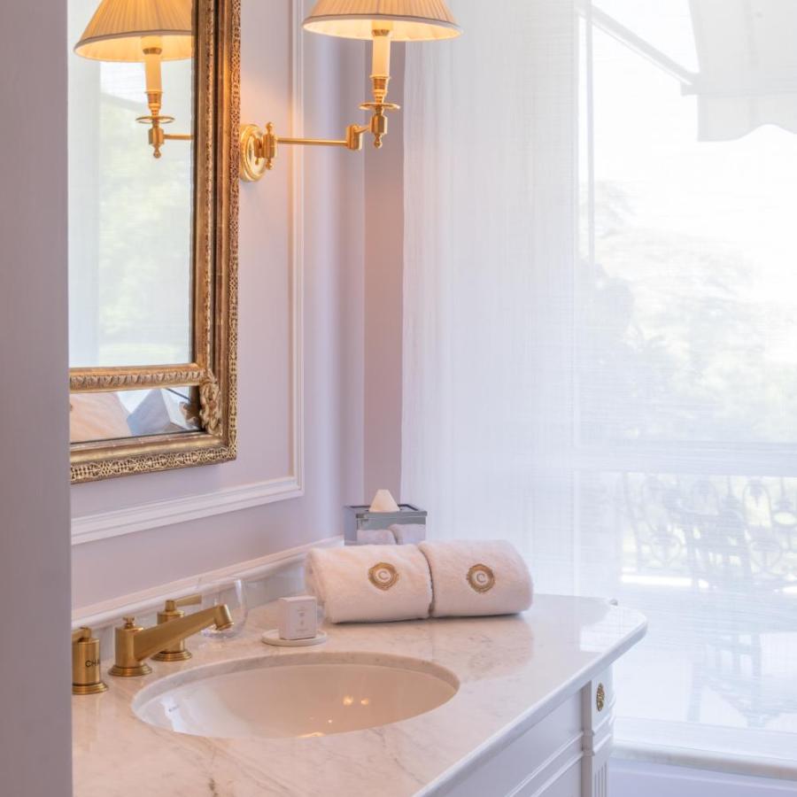 Desde la entrada, la atmósfera acogedora envuelve a los visitantes en un sentimiento de exclusividad. El vestíbulo, adornado con molduras y majestuosas lámparas de araña, marca el tono de una estancia donde cada detalle refleja una artesanía excepcional. A continuación, los elegantes salones y los amplios ventanales se abren a senderos sombreados y céspedes impecablemente cuidados, ofreciendo una perspectiva apacible sobre el parque de estilo francés.