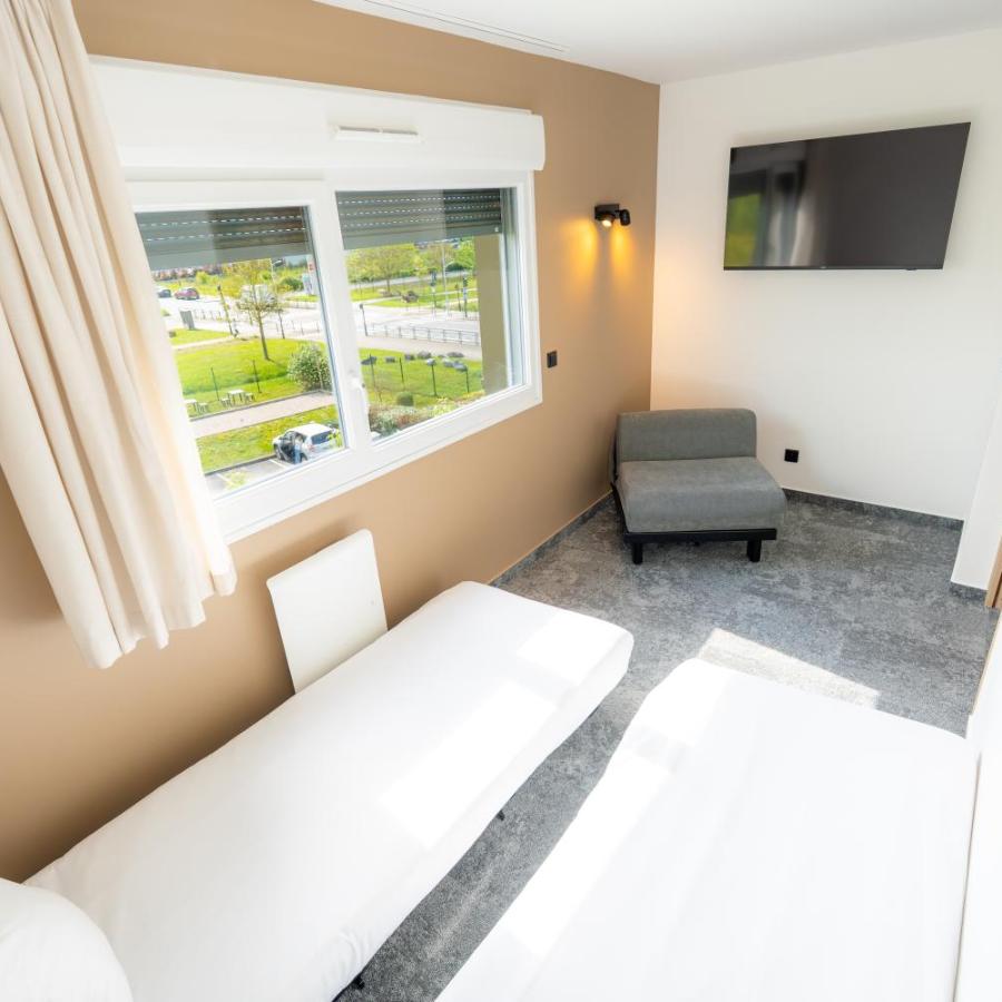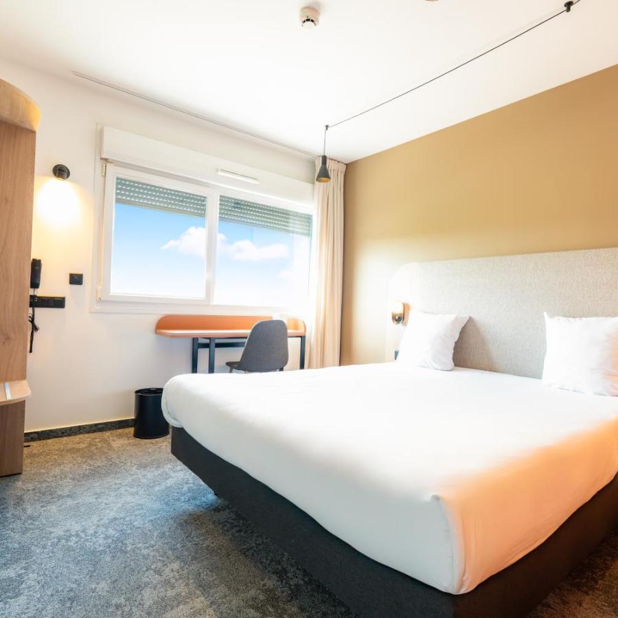 Les chambres offrent un confort fonctionnel et une décoration contemporaine, pensée pour s’adapter à tous les types de séjours. Que vous voyagiez seul, en couple ou en famille, plusieurs configurations sont proposées : chambre double, twin, familiale ou communicante. L’espace a été optimisé pour créer une ambiance apaisante, avec une literie soignée et des équipements pensés pour votre bien-être. Un bureau permet de travailler sereinement, tandis qu’un accès Wi-Fi gratuit et illimité facilite les échanges professionnels ou les moments de détente en ligne.